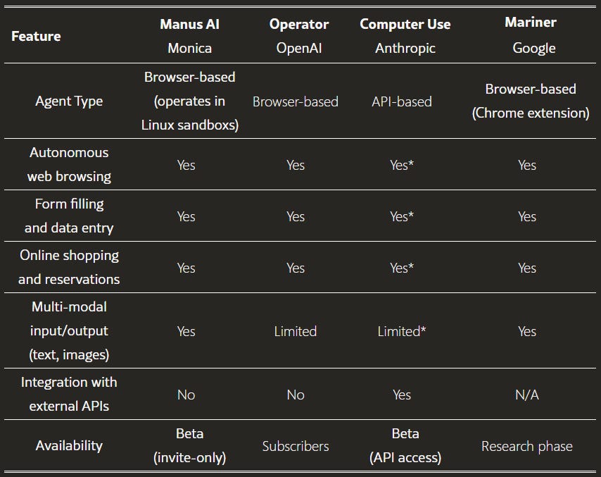 If you’re wondering why none of the others went for Manus: Google has Project Mariner and has set up its own Agent2Agent (A2A) protocol. OpenAI has Operator. Meta had nothing. Manus is more of an orchestration layer (uses Alibaba’s Qwen and Anthropic’s Claude) than a foundational model. These dependencies will have to be worked out by Meta.